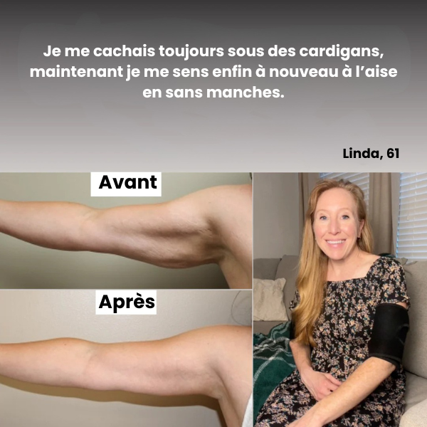 J’ai remarqué une réduction significative de la flasque du haut de mes bras. Ce kit est confortable et facile à intégrer dans ma routine quotidienne. J'adore ça!